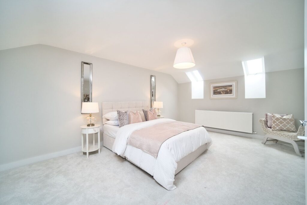 The first-floor accommodation is fitted with a soft carpet that wraps around the hallway, bedrooms and second floor. Fitted wardrobes are to be found in all bedrooms except the single bedroom. The contemporary family bathroom comes with a w.c., wash hand basin and bathtub and is fully tiled. The ensuite in the master bedroom and upstairs attic are similarly styled and include a walk-in shower enclosure with monsoon shower head. The converted upstairs attic can be used for many different purposes, including a home office, lounge area or even a guest room.